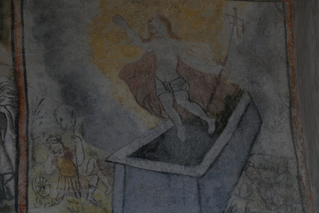 1681 stifteten Bauern zu den vorhandenen romanischen (vor 1300) und gotischen Fresken große Wandmalereien, die heute noch zu sehen sind.