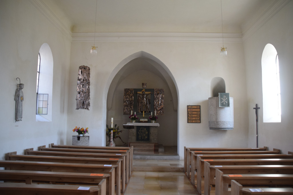 Bei Renovierungen des 20. Jahrhunderts wurde sie mit Kunstwerken des Wemdinger Bildhauers Ernst Steinacker ausgestattet. Die Orgel wurde von der Oettinger Orgelbaufirma Steinmeyer gebaut.